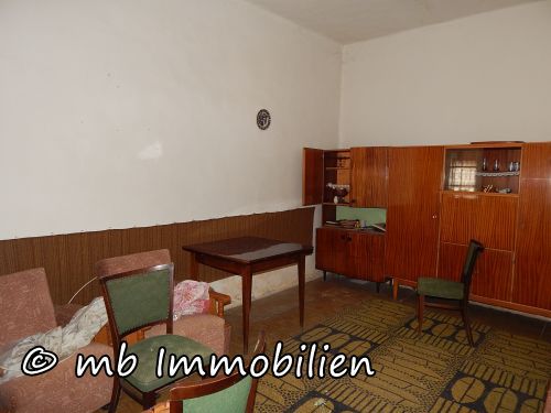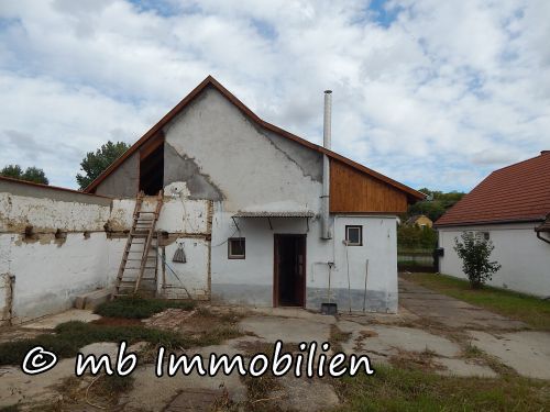Das renovierungsbedürftige Wohnhaus mit insgesamt 95m² Wohnfläche befindet sich auf der rechten Seite des Grundstücks und läuft mit einer kurzen Unterbrechung in die ehemaligen Stallungen aus. Die Góré, die das Wohnhaus mit den Stallungen verbunden hatte, wurde bereits abgerissen und ist einem großzügigen Innenhof gewichen.