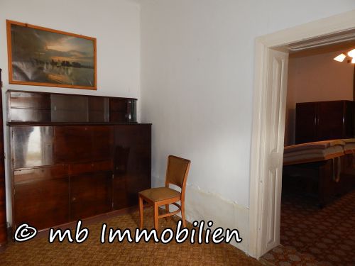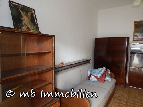 Verlässt man Esszimmer über die Außentür, gelangt man auf den Fürgang. Hier führt eine eigene Tür zu den beiden separaten Wohnräumen. Das erste Zimmer eignet sich gut für ein großzügiges Arbeits- bzw. Gästezimmer oder ein kleines Wohnzimmer. Das anschließende Schlafzimmer, das zur Straße hin liegt, verfügt über genug Platz für ein Doppelbett und kleinere Kleiderschränke und Kommoden.