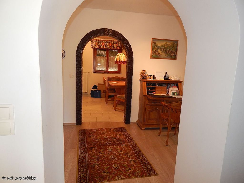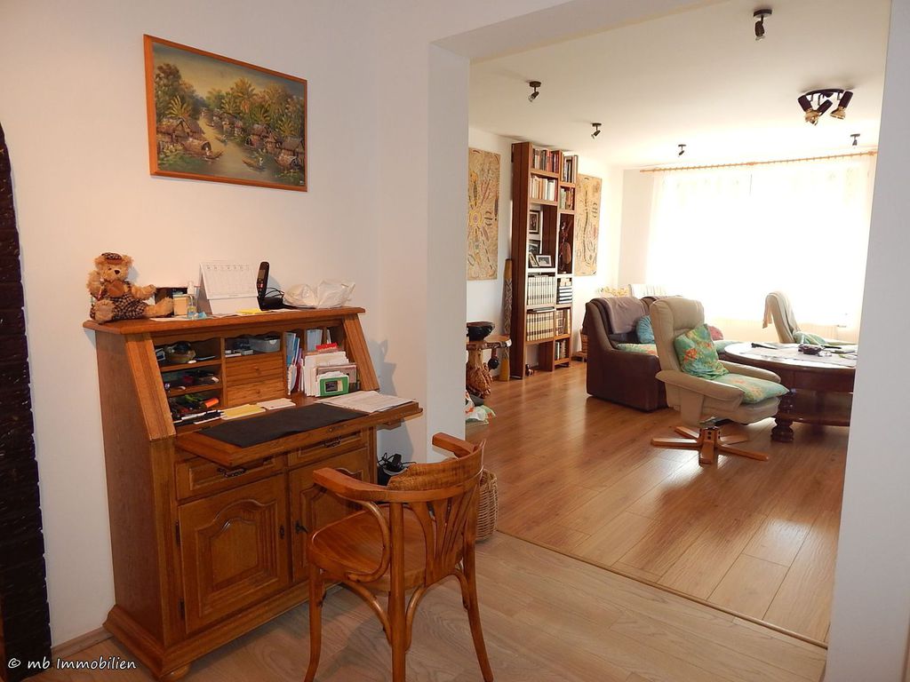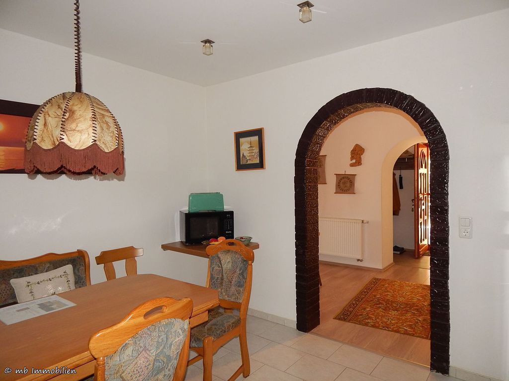 Die Wohnfläche von etwa 135 Quadratmetern verteilt sich auf eine Etage und einem zusätzlichen Schlafzimmer im DG. Im Erdgeschoss betritt man das Haus durch einen zentralen Flur übergeht, von dem aus die meisten Räume zugänglich sind. Das helle und freundlich gestaltete Esszimmer, das sich ideal als Treffpunkt für Familie und Gäste eignet. Die angrenzende Küche ist funktional geschnitten und bietet ausreichend Platz für eine umfassende Kücheneinrichtung mit Stauraum und Arbeitsflächen.