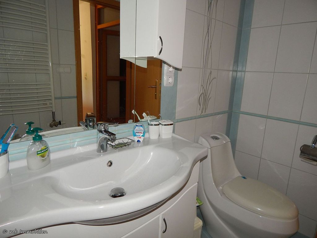 In der Verlängerung zur Küche ist das separate WC untergebracht, das nicht nur durch moderne Fliesen und gute Belüftung überzeugt, sondern auch die Anschlüsse für eine Waschmaschine bietet. Das Wohnzimmer, ruhig gelegen und großzügig gestaltet, lädt mit seiner warmen Atmosphäre zum Verweilen und Entspannen ein. Daneben befindet sich ein kleineres Zimmer, welches als Büro genutzt werden könnte, jedoch ebenso gut als Gästezimmer, Kinderzimmer oder Hobbyraum dienen kann. Das Schlafzimmer im Erdgeschoss ist nach hinten ausgerichtet und bietet einen ruhigen Rückzugsort. Das Badezimmer ist vollständig ausgestattet mit einer Badewanne, einem Waschbecken und einem weiteren WC. Es ist hell, sauber und klassisch modern gestaltet.