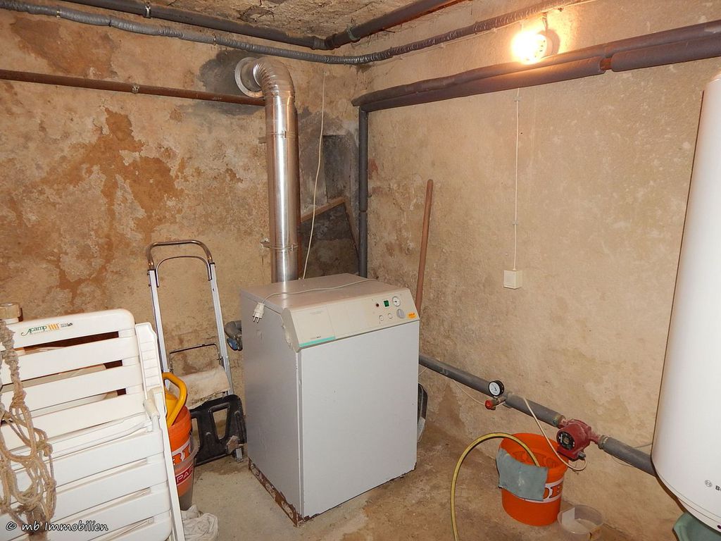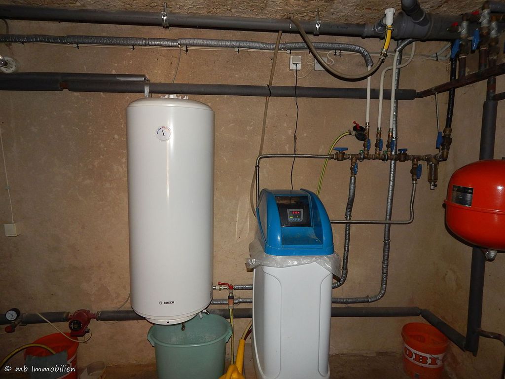 Das Haus, bzw. die Terrasse ist unterkellert. Im Keller befinden sich neben einer kleinen Werkstatt auch die technischen Einrichtungen des Hauses. Die Beheizung erfolgt über eine Gaszentralheizung, die zuverlässig für wohlige Wärme sorgt. Zusätzlich sind hier ein Wasserspeicher und eine Wasserenthärtungsanlage untergebracht – eine Ausstattung, die in der Region besonders geschätzt wird, da sie sowohl Haushaltsgeräte schont als auch das Trink- und Nutzwasser angenehmer macht.